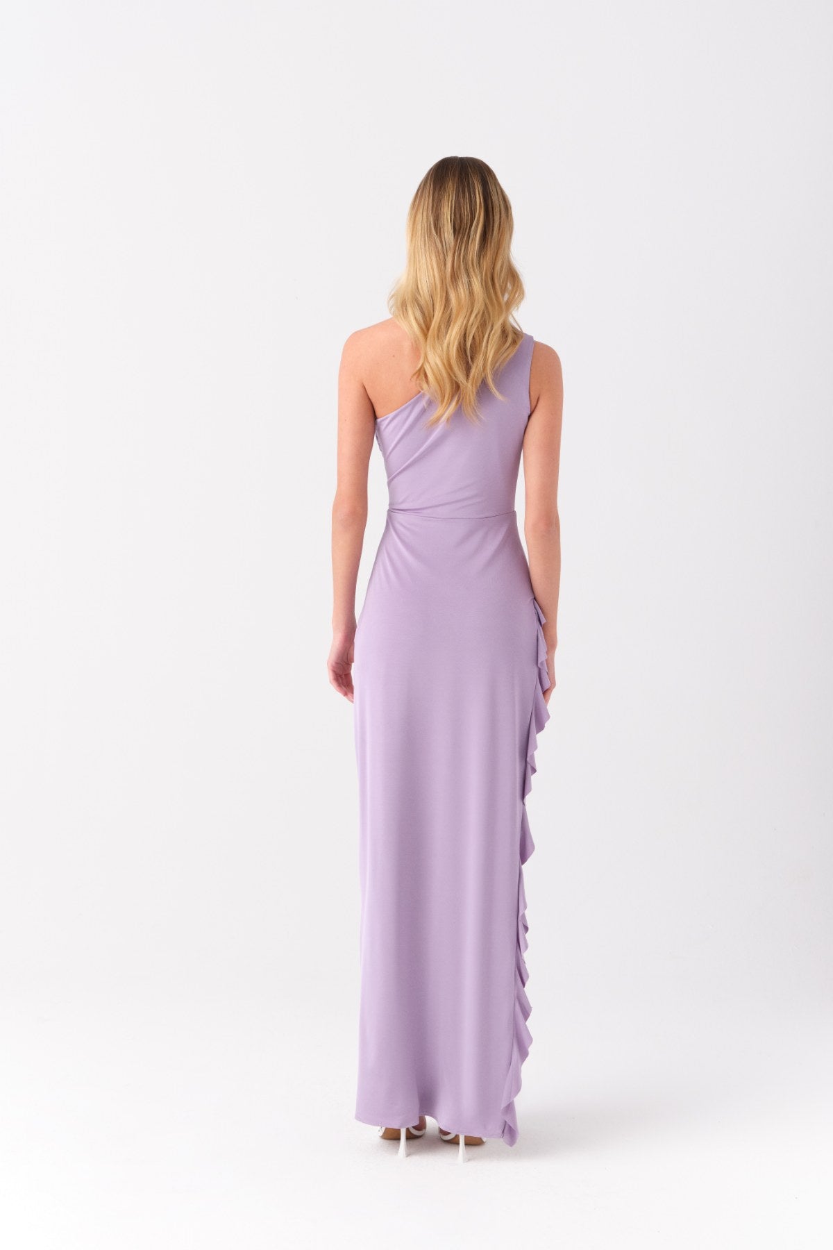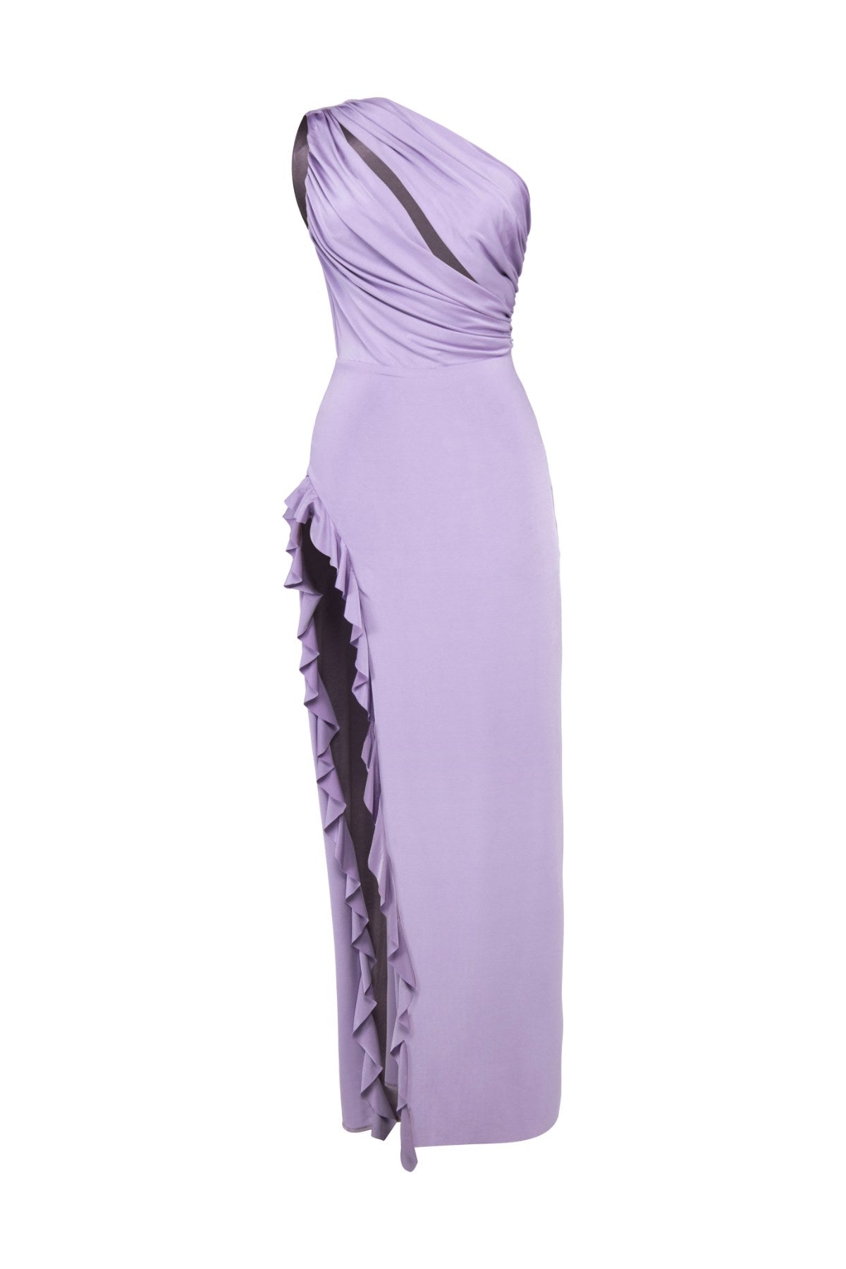 Esnek kumaşlı yırtmaç detaylı uzun elbise.