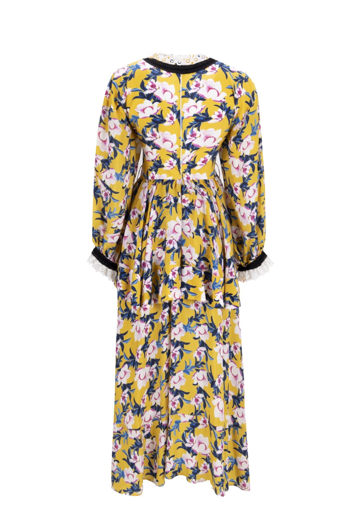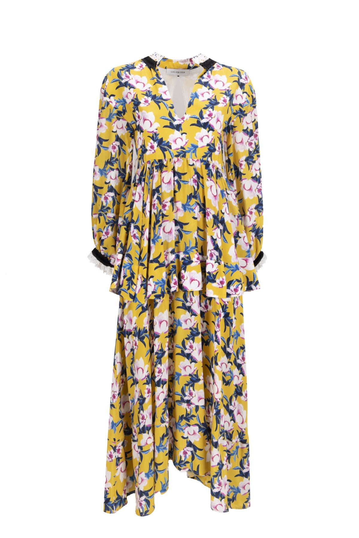 Sarı tonlarında, drapeli üst kısmı ve yırtmaç detaylı düz etek kesimiyle enerjik ve zarif bir modeldir. Üretim yeri: Türkiye.