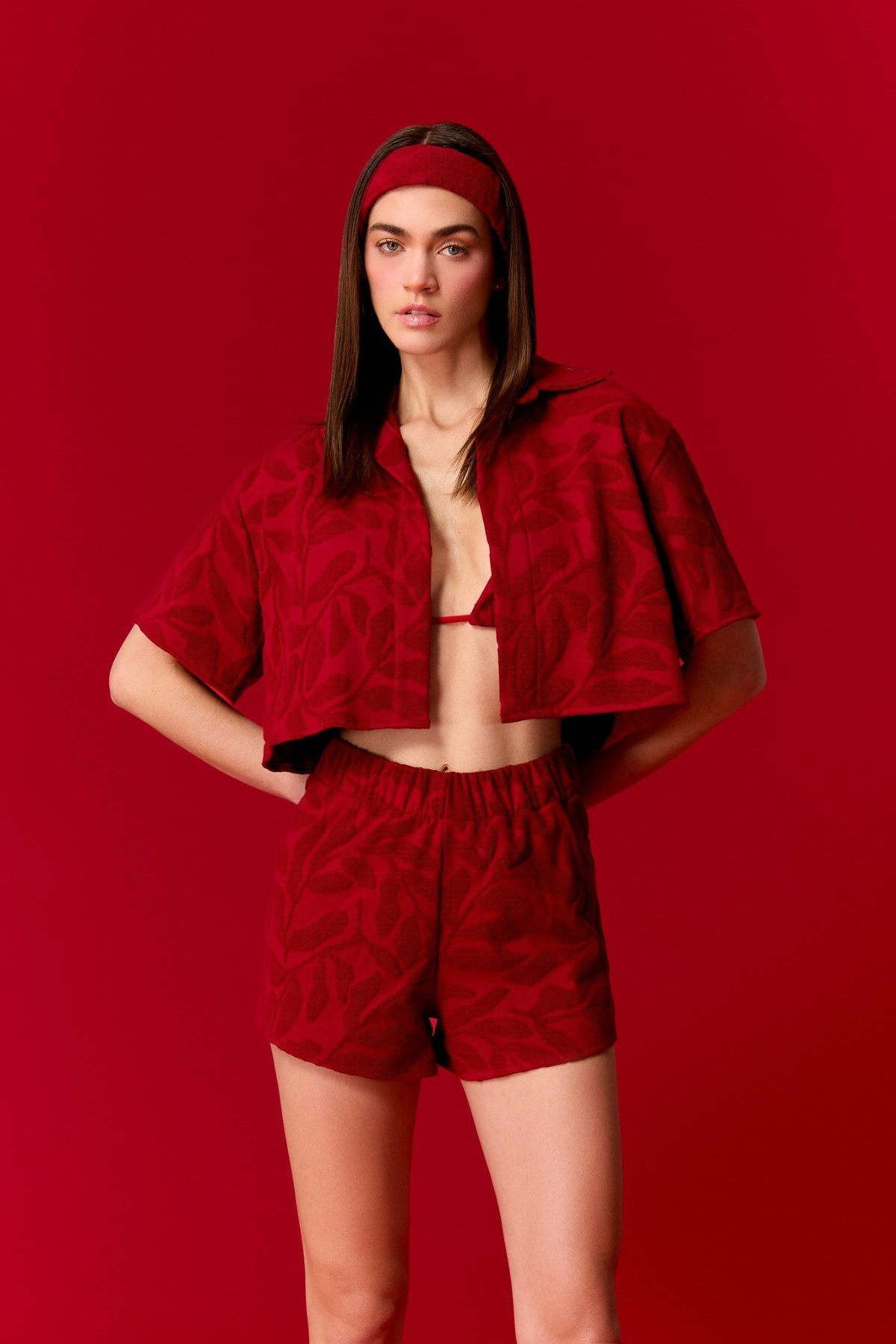 Mini şort ve gömlek Takım %100 pamuk kumaştan üretilmiştir.