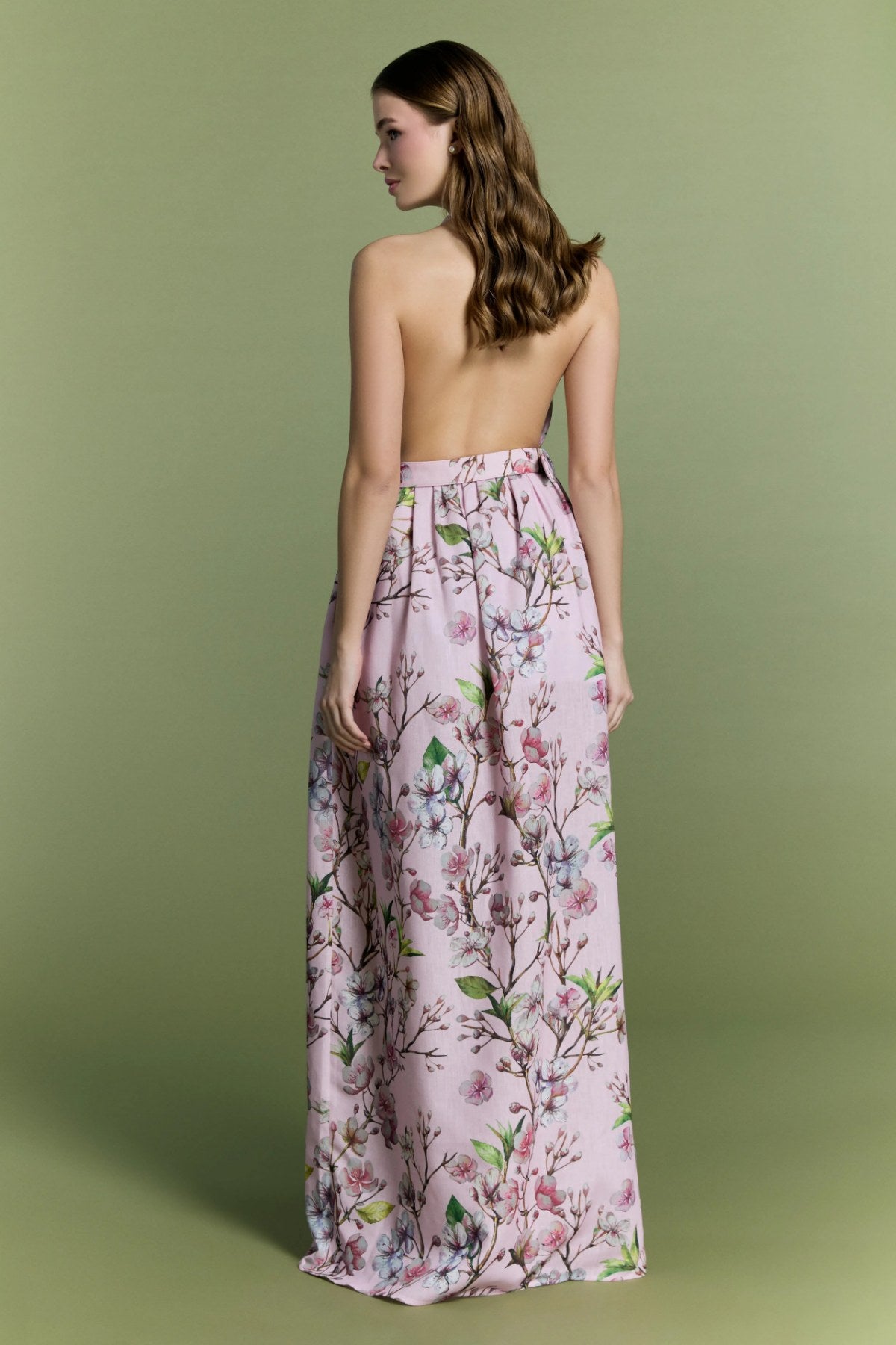 Zarif ve modern çizgileri buluşturan bu tasarım, pembe tonlarda çiçek desenli kumaşıyla feminen bir görünüm sunuyor.