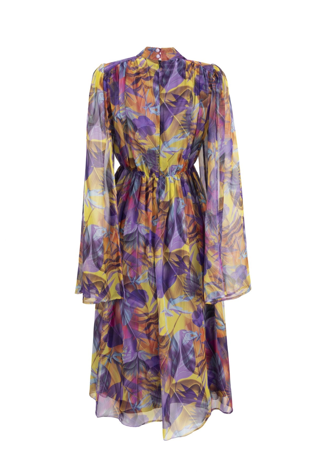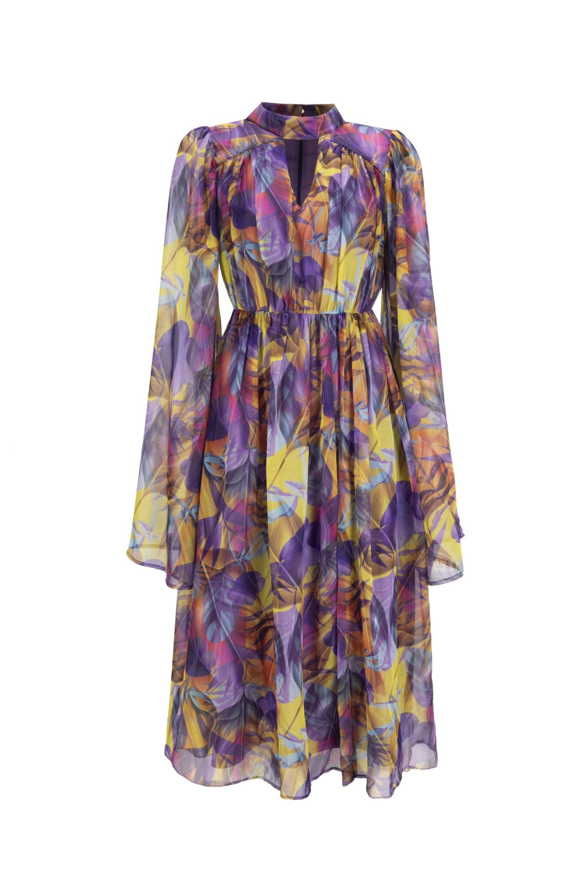 Açık tonlarda, geniş askılı ve düz kesimli, etek ucunda volan detayları bulunan, rahat ve sade bir elbisedir. Üretim yeri: Türkiye.