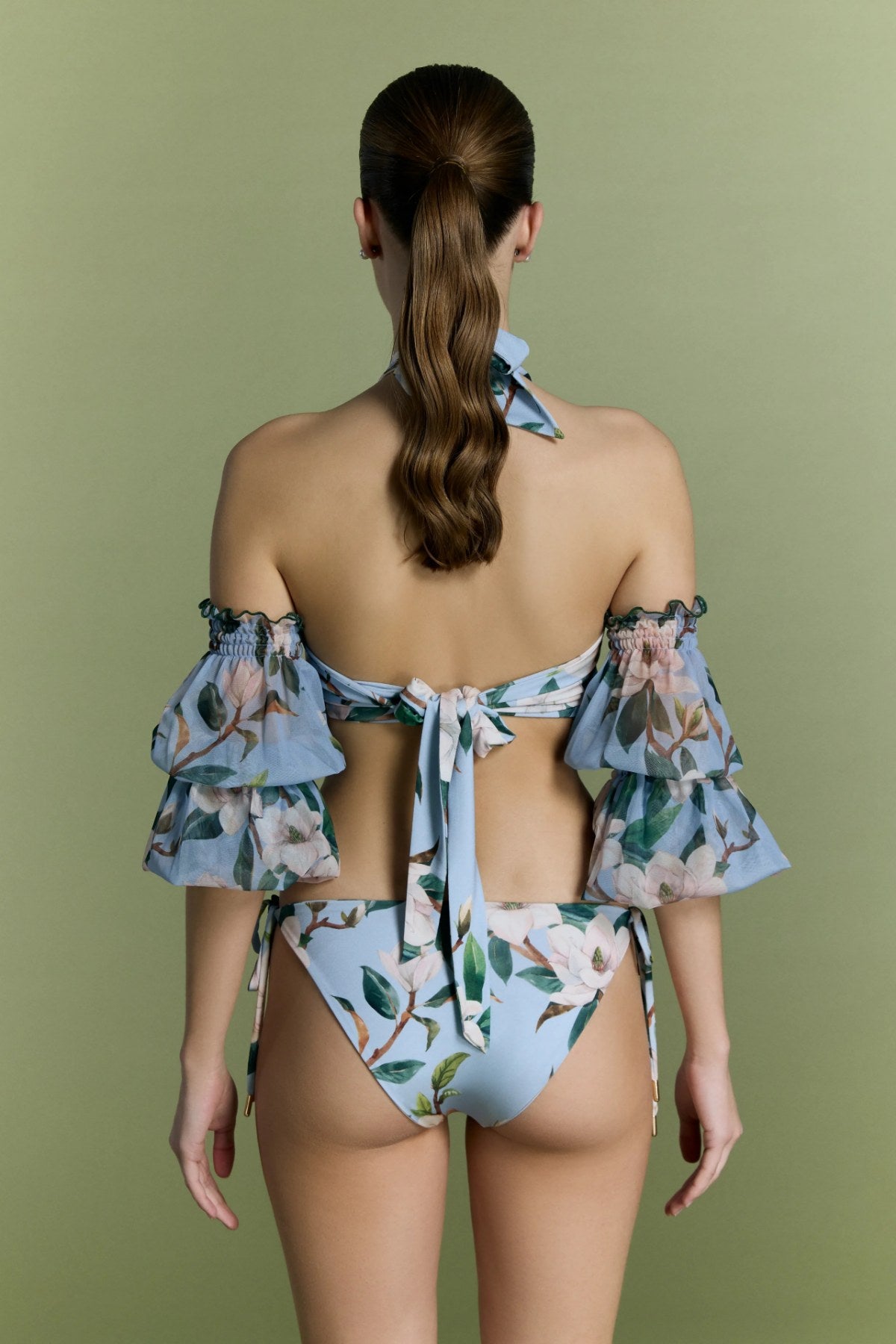 Yan bağlamalı bikini altı, desenle uyumlu tasarım