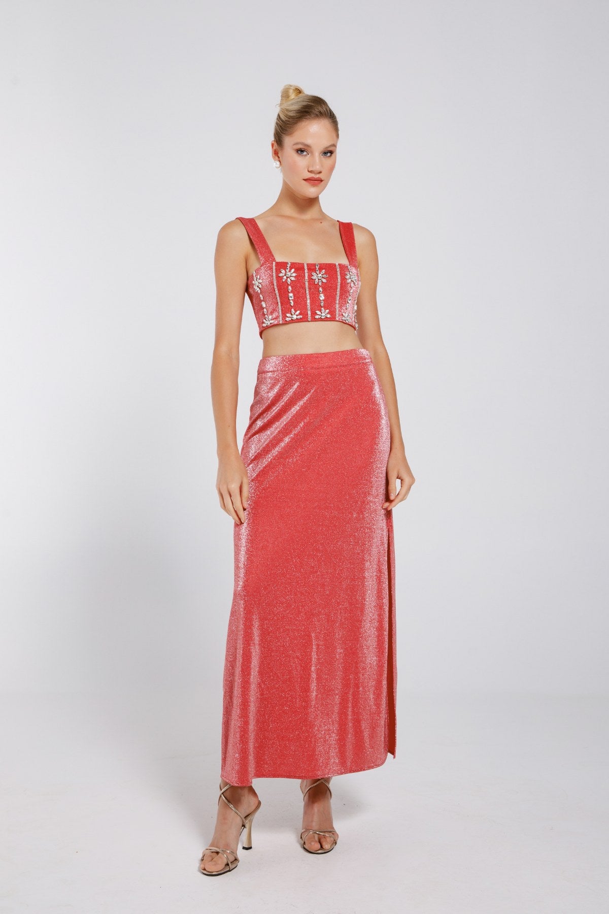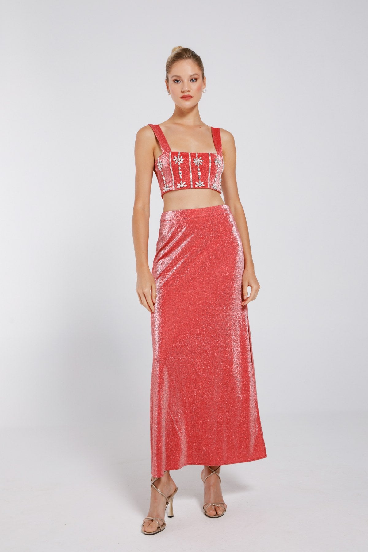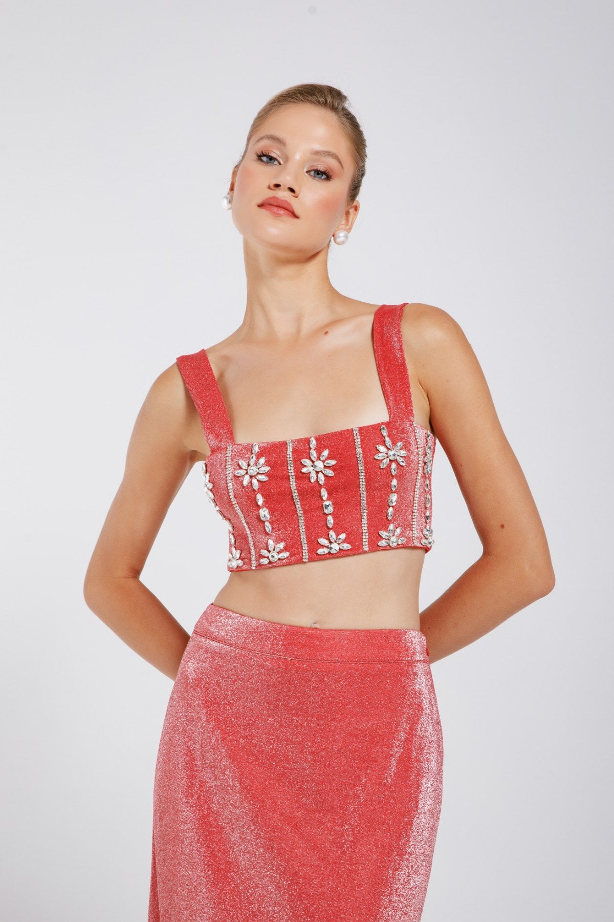 Likralı Örme Kumaş. Büstiyeri Tamamen El İşlemesidir.
