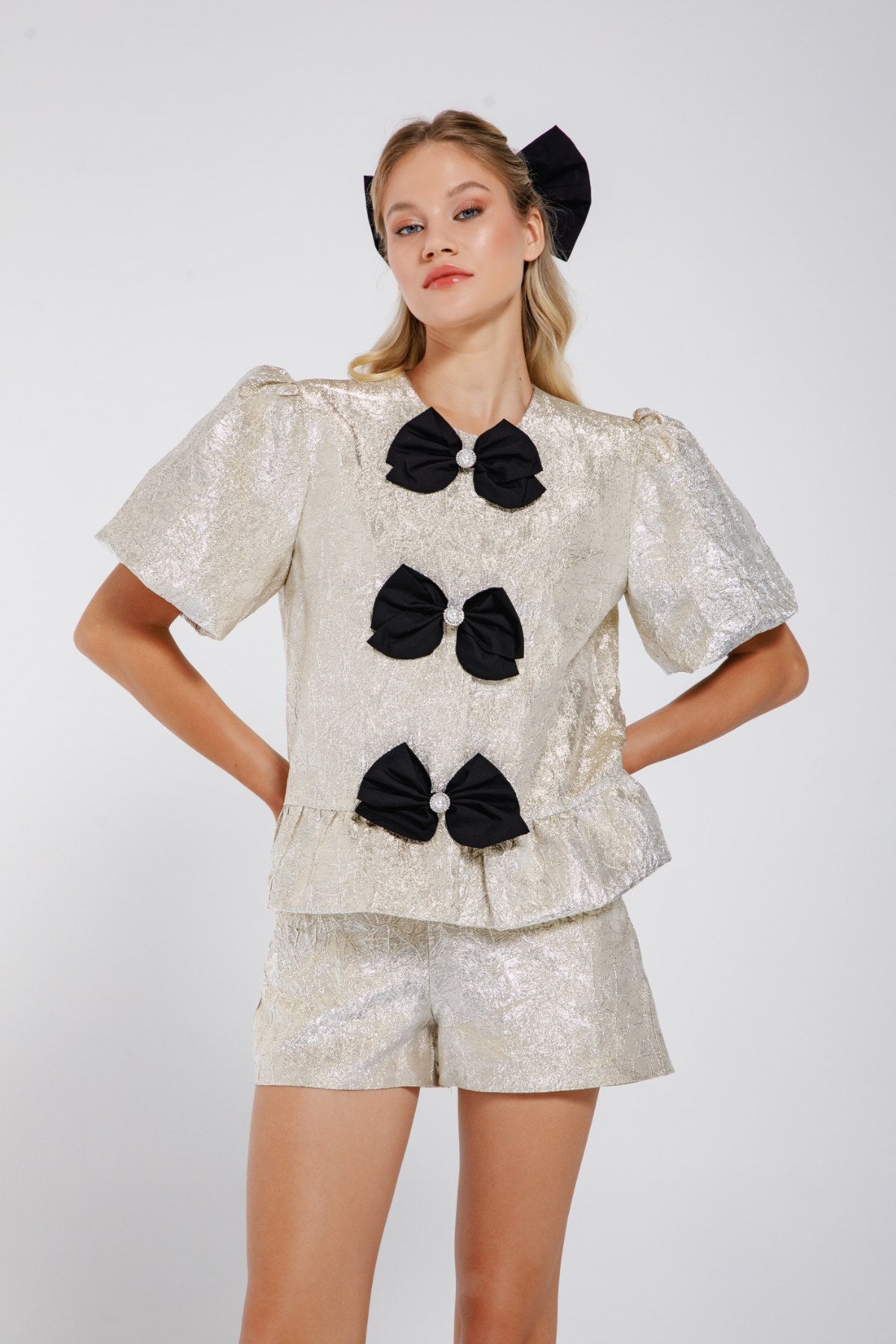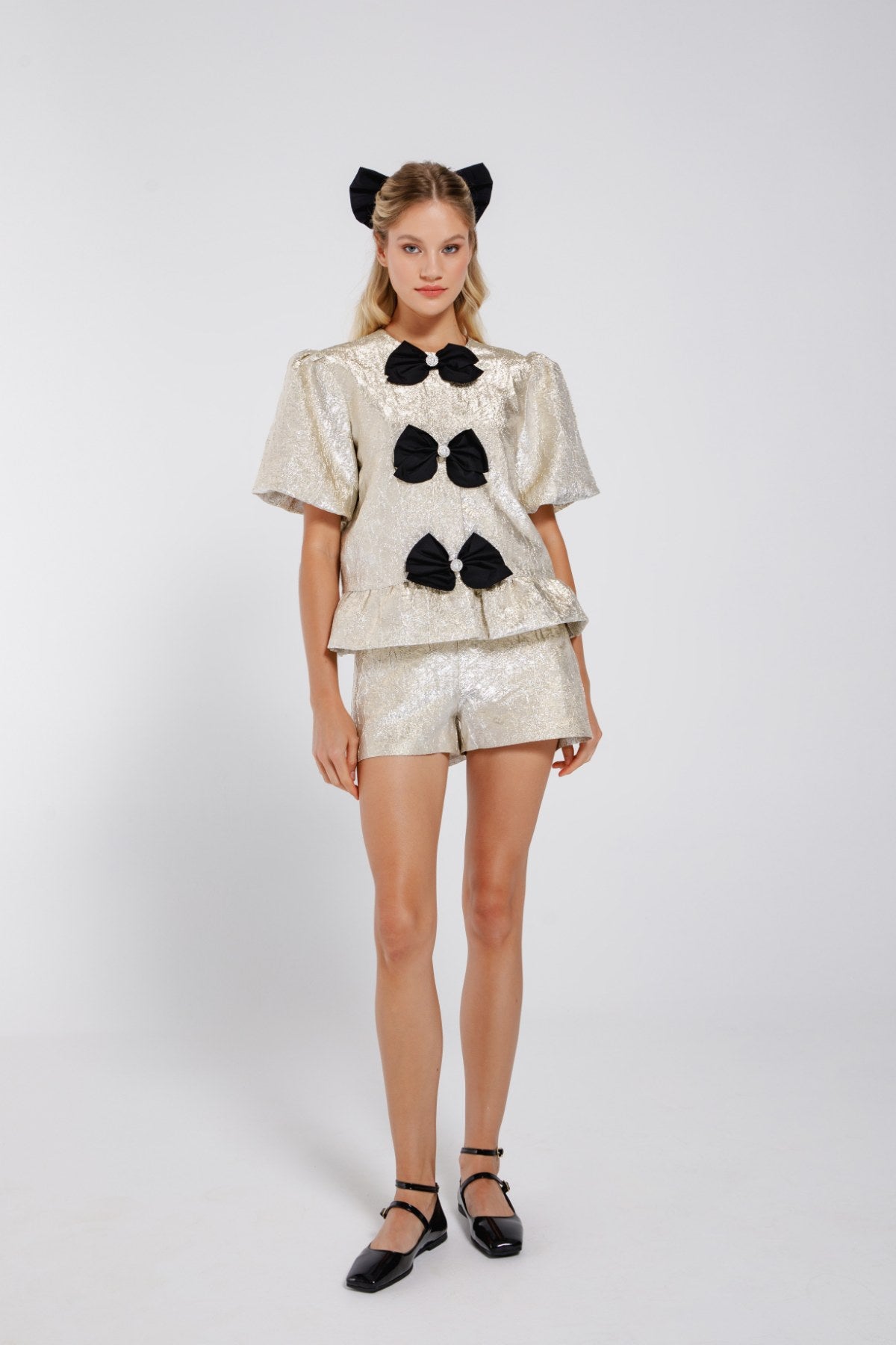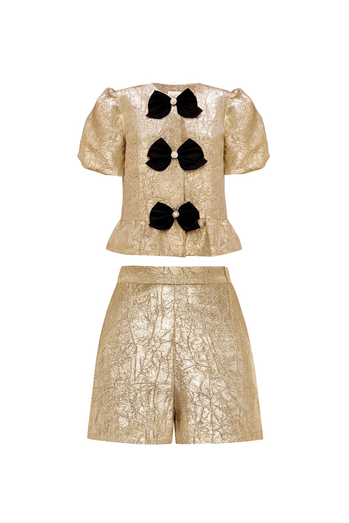 Kurdele Detaylı Takım. Şort Bel Lastiklidir.