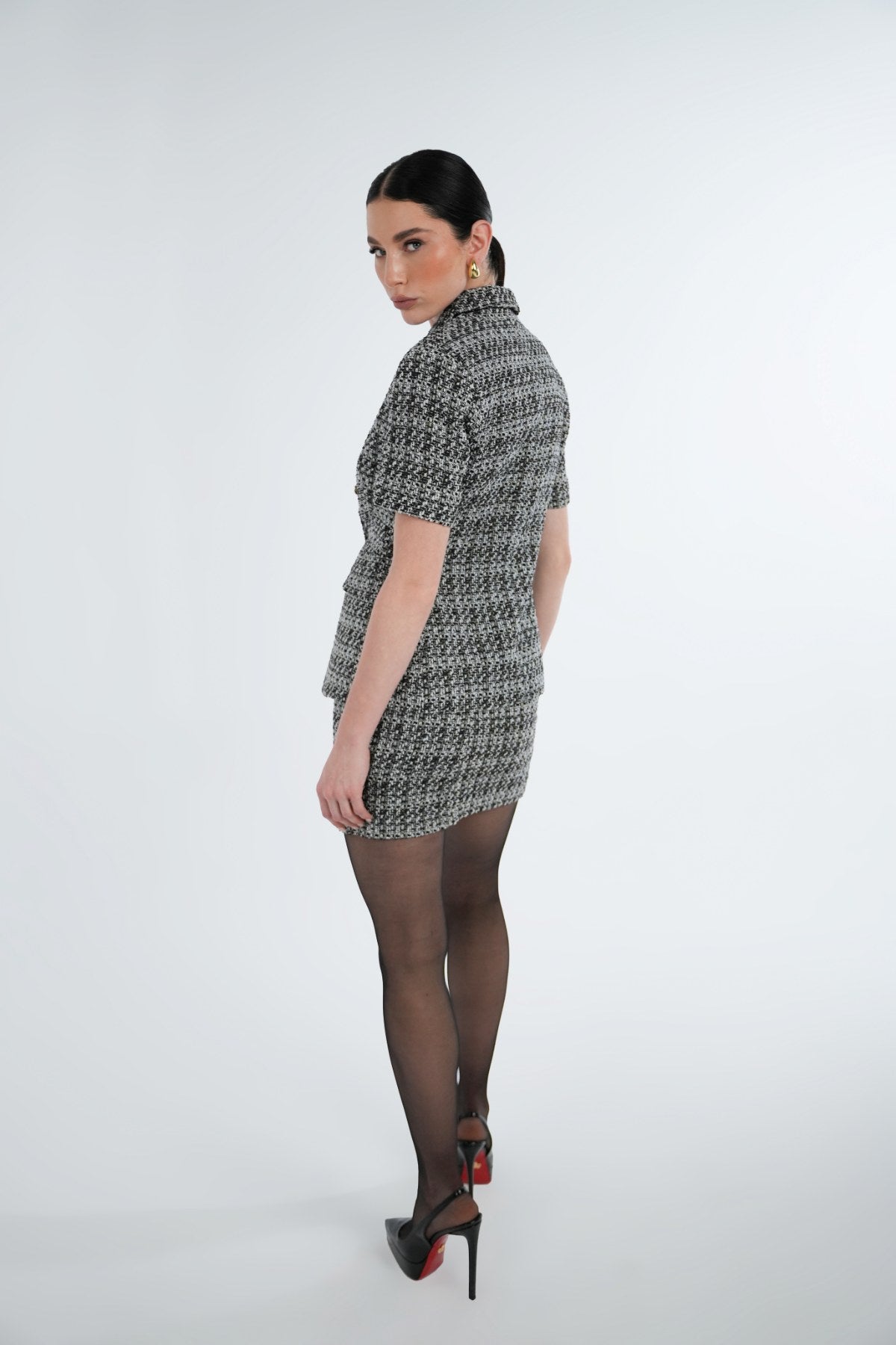 Siyah-beyaz yumuşak tüvit kumaş etek.