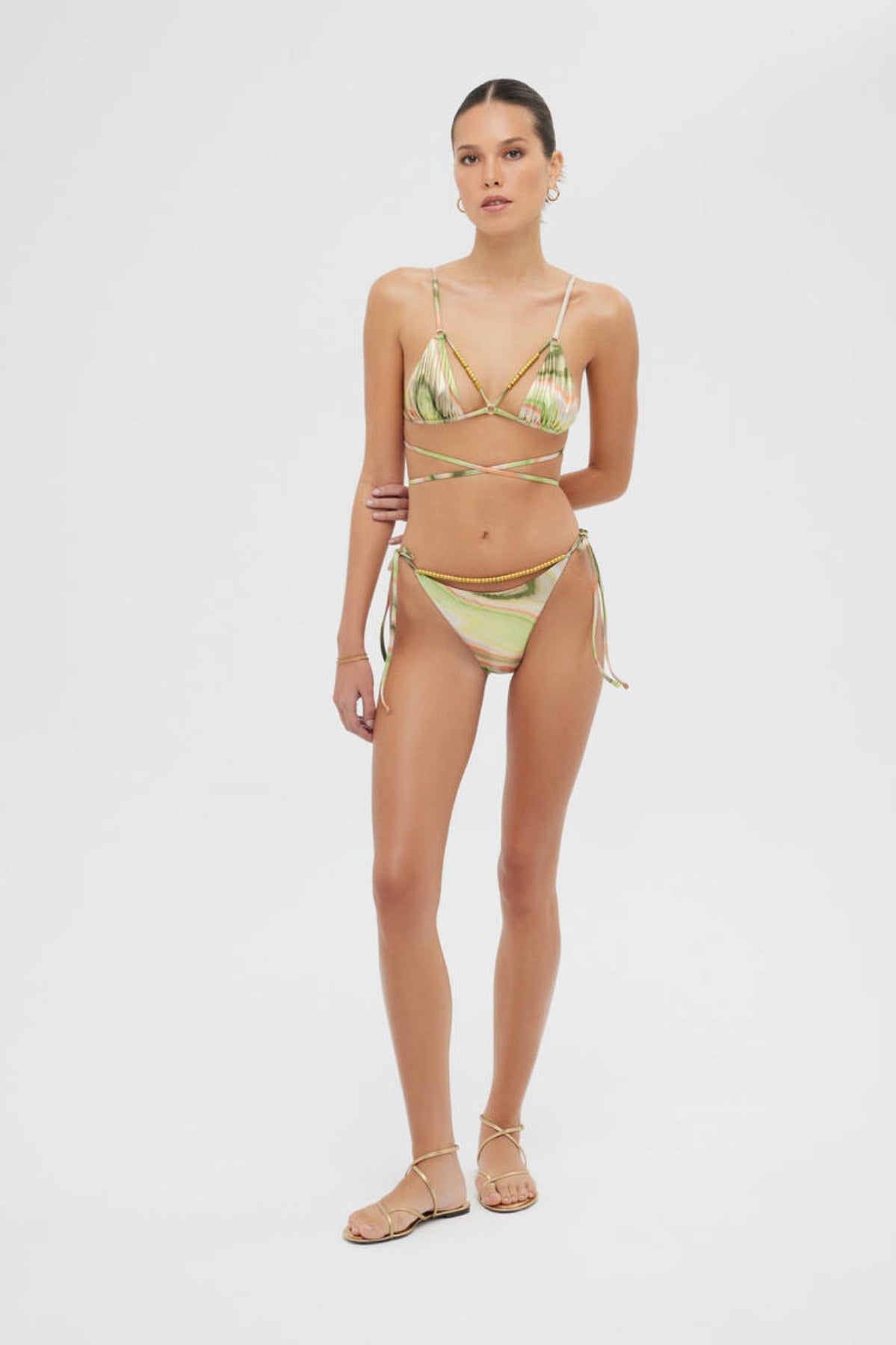 Gümüş boncuk ve drape detaylı, üçgen bikini takımı