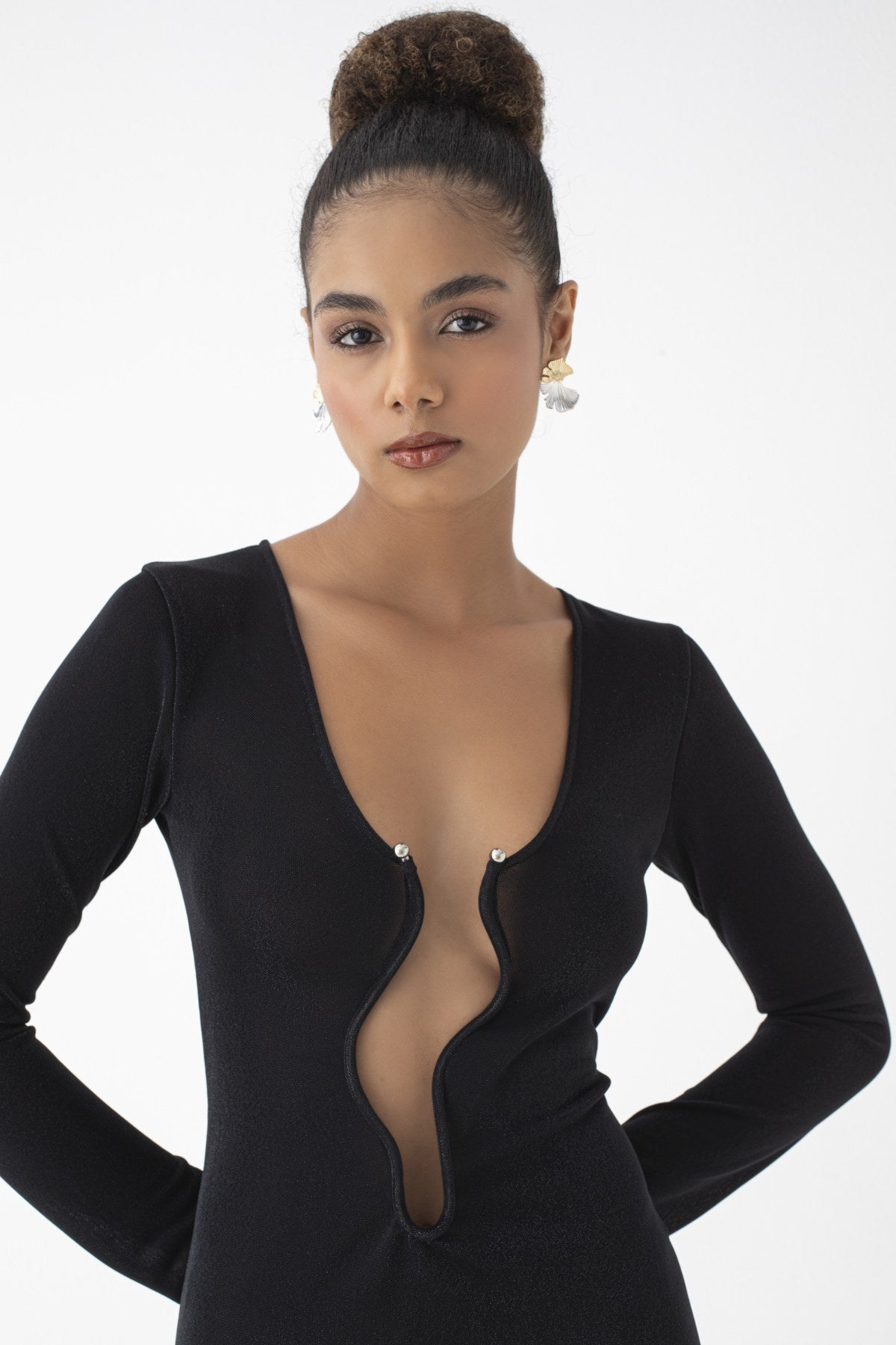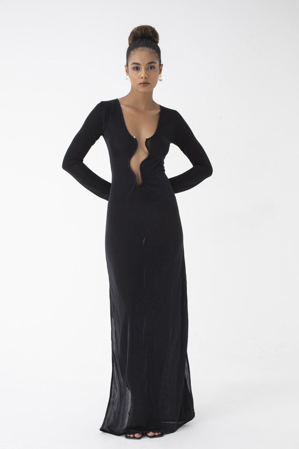 Monaco Uzunkol Elbise Siyah
