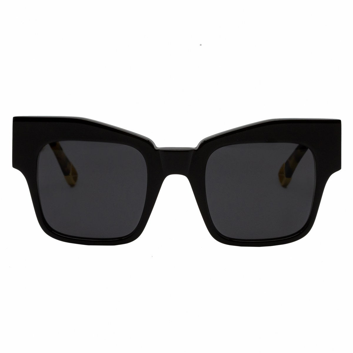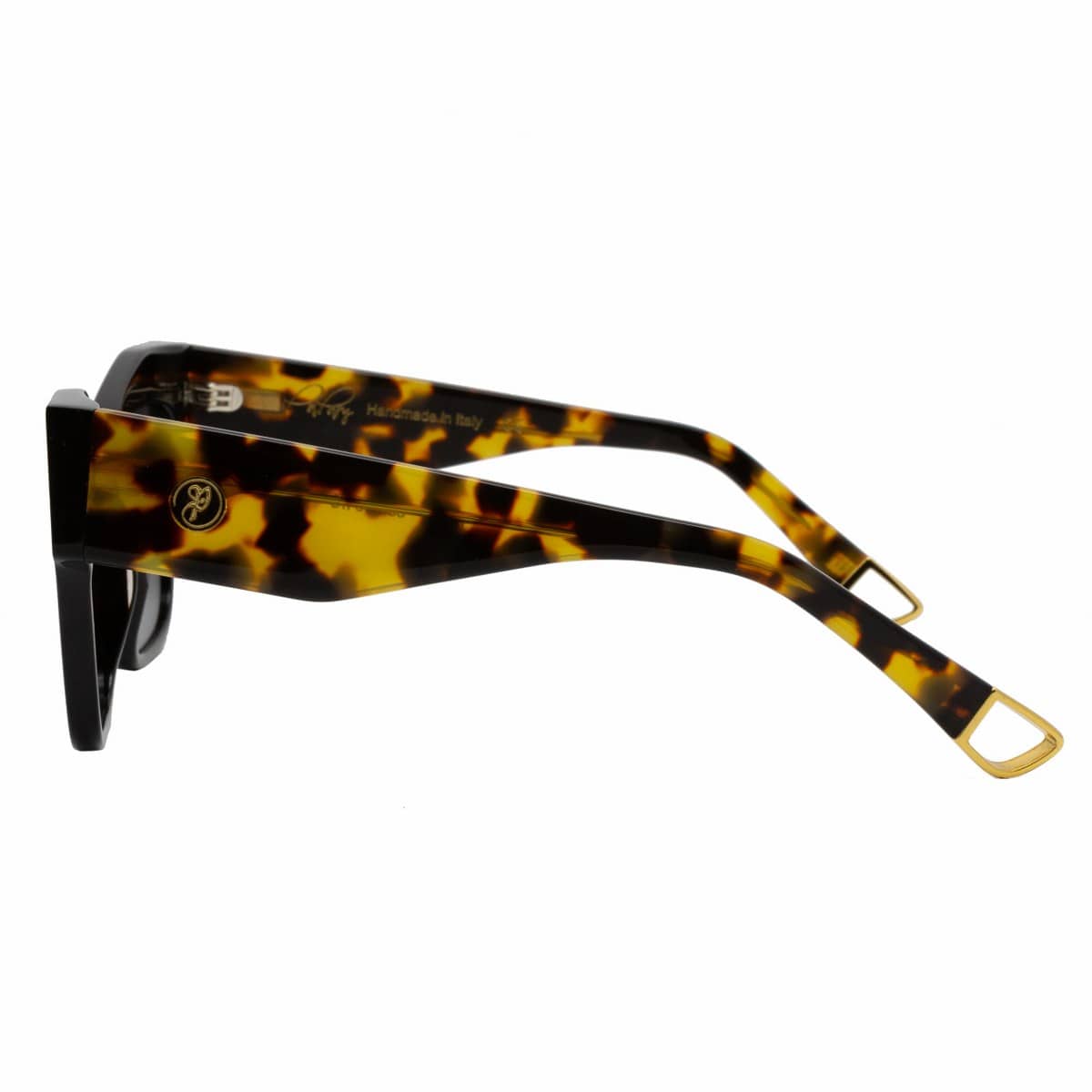 Kemik Oversize Kare Model Siyah - Leopar Saplı Güneş Gözlüğü