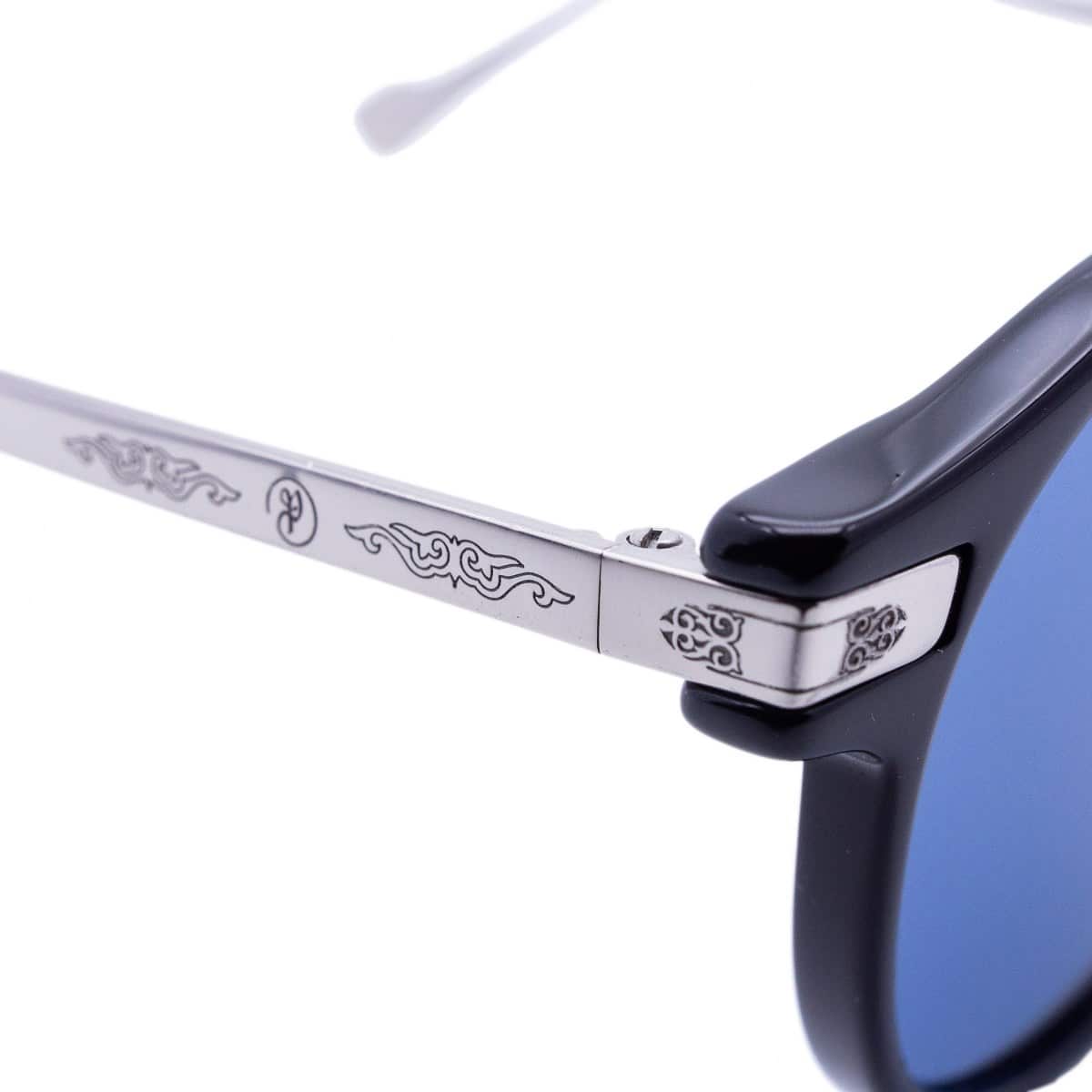 Kemik Oval Model Özel Desenli Sap Detaylı Siyah/İndigo Mavi Unisex Güneş Gözlüğü