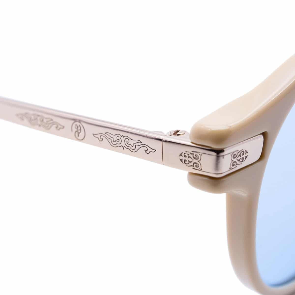 Kemik Oval Model Özel Desenli Sap Detaylı Bej/Açık Mavi Unisex Güneş Gözlüğü