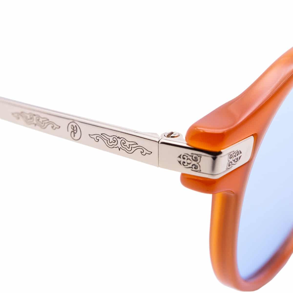 Kemik Oval Model Özel Desenli Sap Detaylı Desenli Turuncu /Açık Mavi Unisex Güneş Gözlüğü