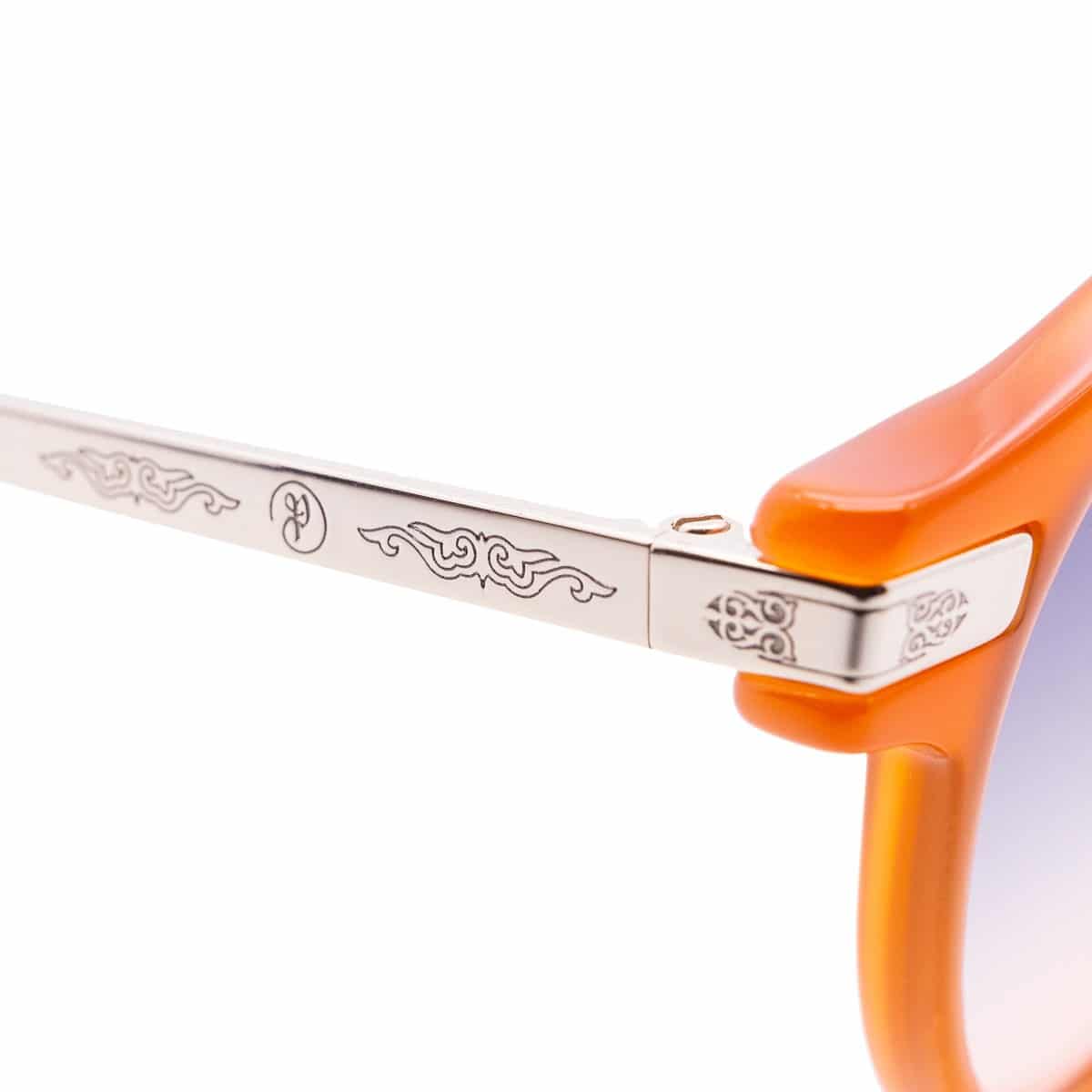 Kemik Oval Model Özel Desenli Sap Detaylı Turuncu/Füme-Turuncu Degrade Unisex Güneş Gözlüğü