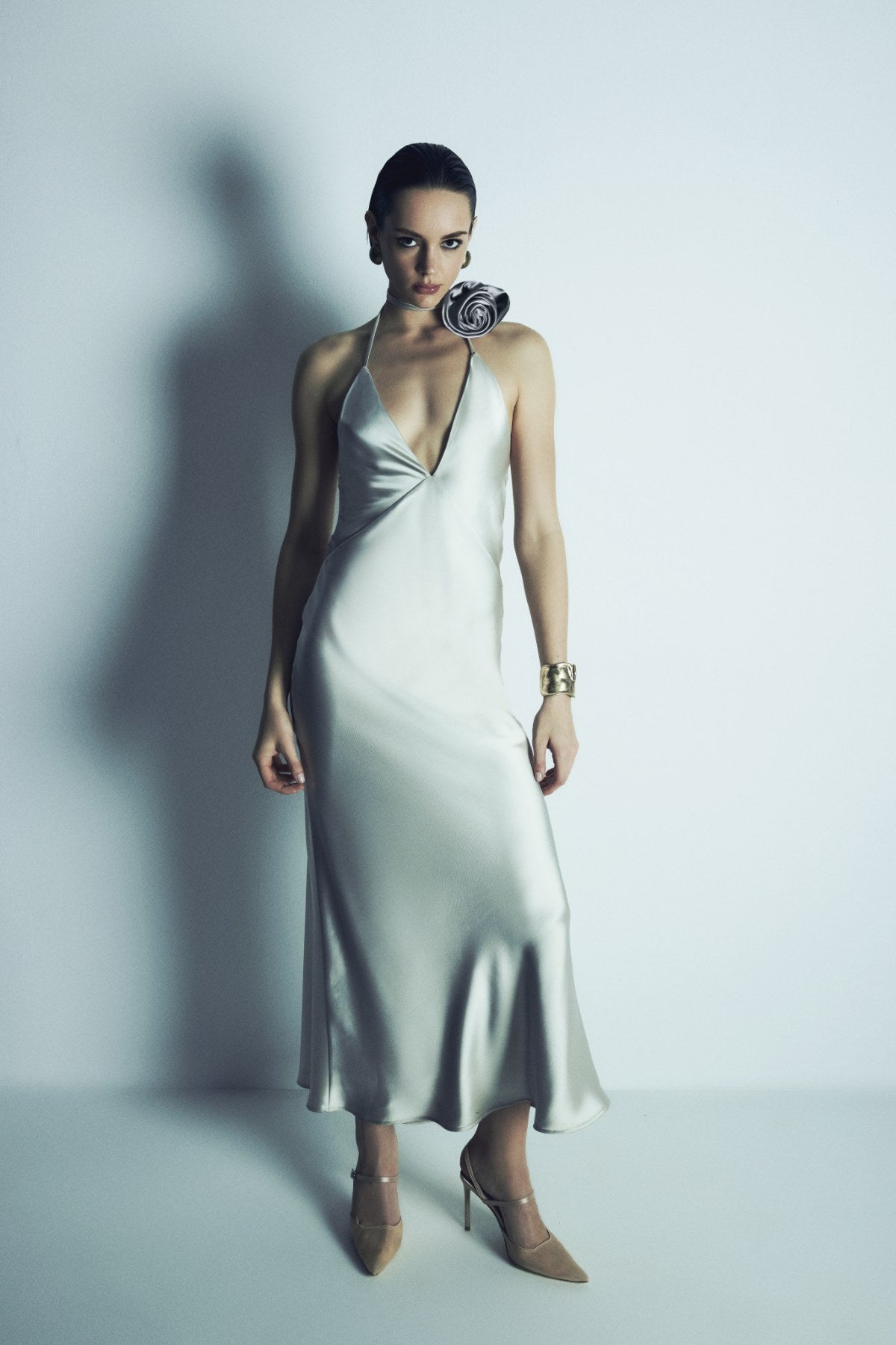 Geceyi saf ışığyla aydınlata Ay’dan bir parça gibi kaliteli satenin parlaklığıyla bu dünyayı sizin takipçiniz yapacak Piece de Luna Dress ile naif duruşunuza zarif bir dokunuş yapabileceksiniz.. Piece de Luna Dress’in opsiyonel gül detayıyla tarzınızı dilediğiniz gibi tamamlayın…