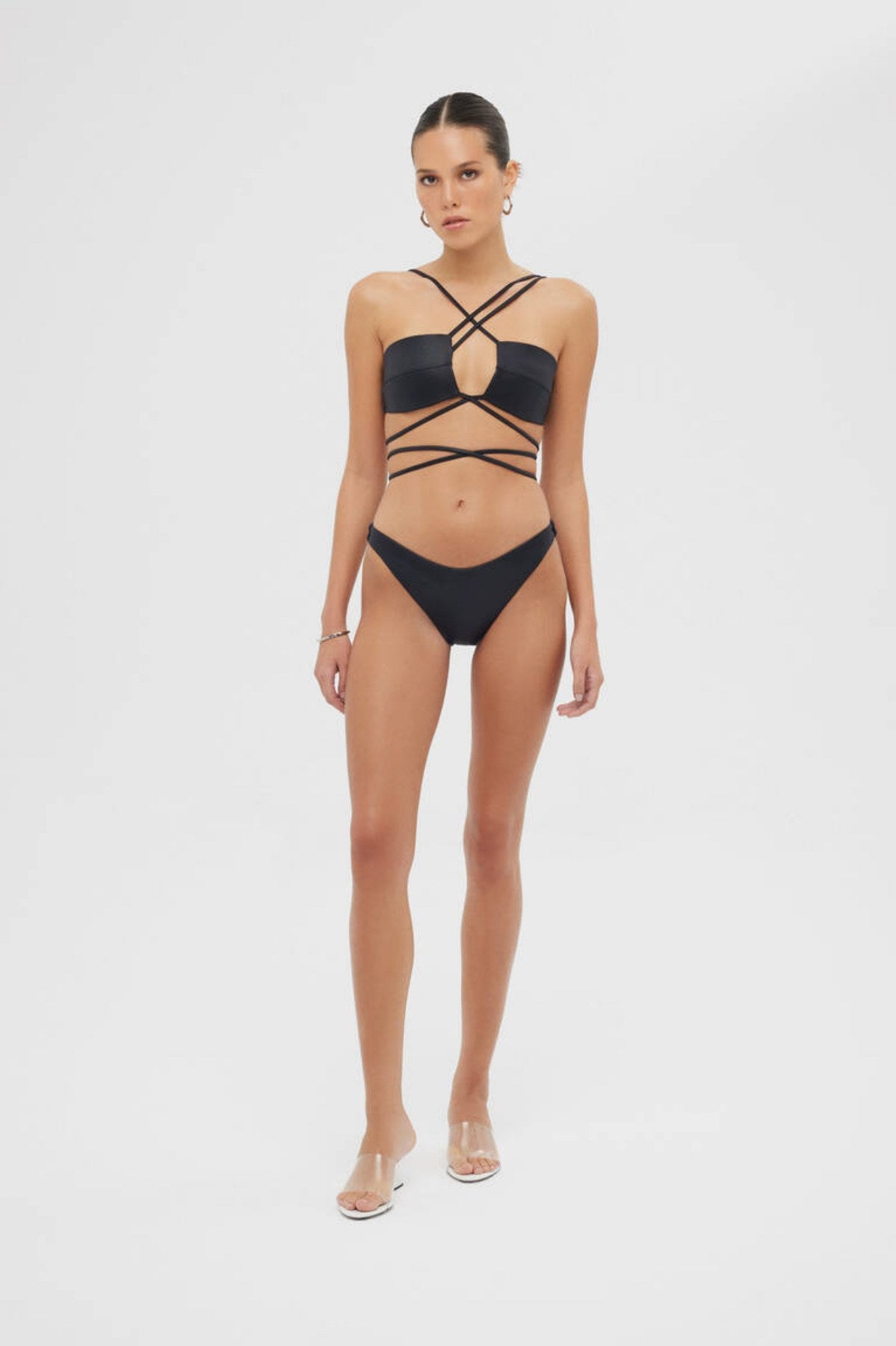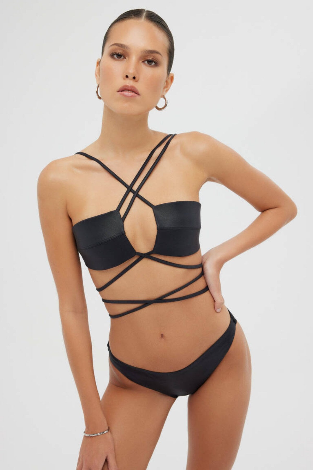 Çapraz ince askılı , belden bağlamalı, straplez bikini takımı
