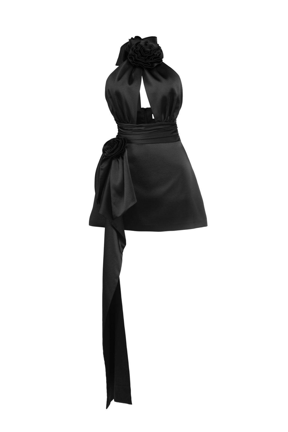 Gül Aksesuarlı Saten eteği balenli Elbise